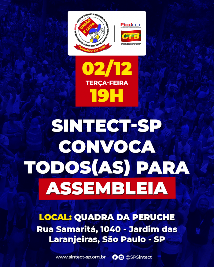 Vamos realizar uma grande assembleia, mostrar nossa disposição de lutar em defesa dos nossos direitos e conquistas!