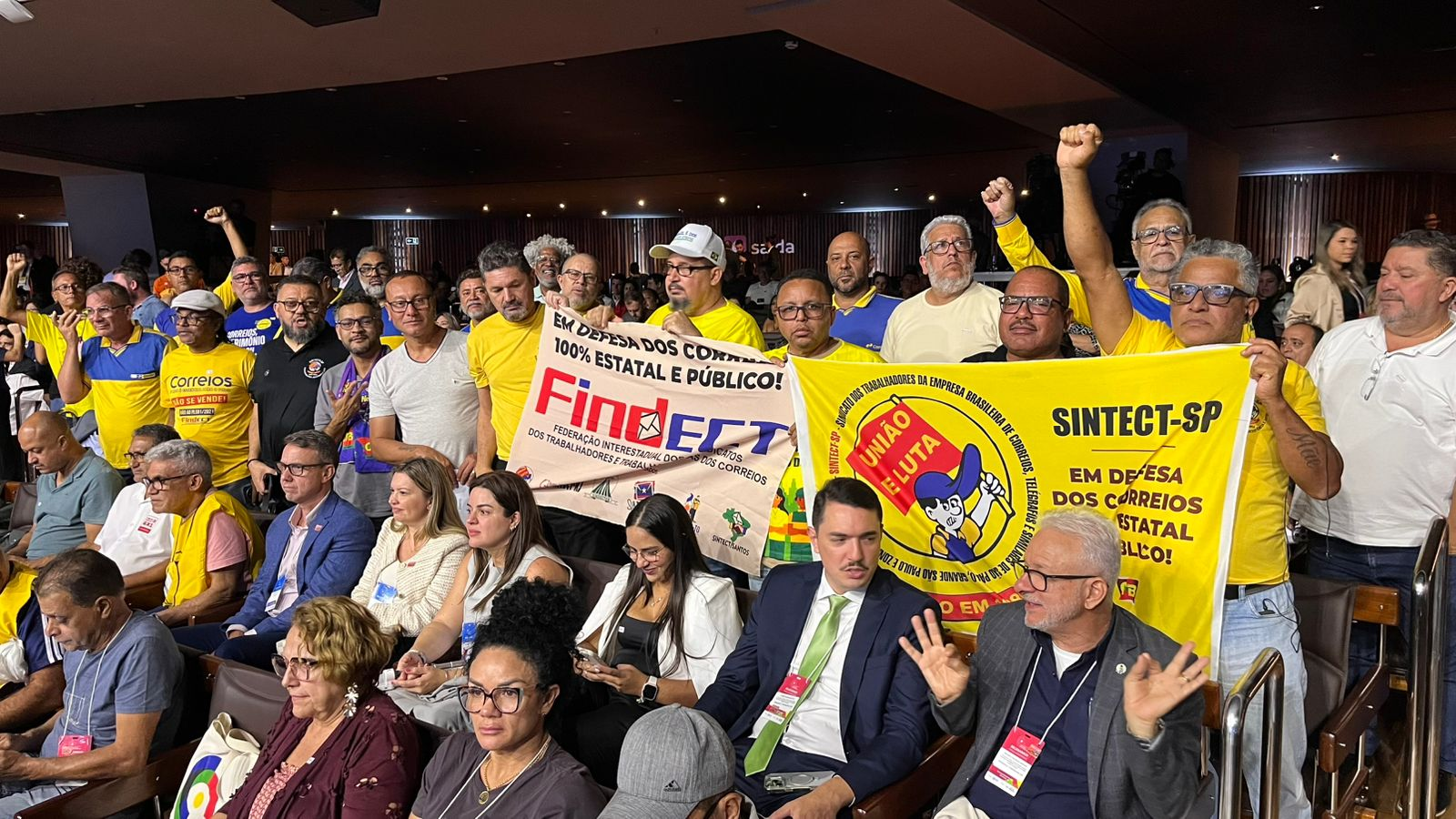 Durante a abertura do evento, os dirigentes sindicais levantaram bandeiras e entoaram palavras de ordem chamando a atenção das autoridades para a situação enfrentada pelos trabalhadores dos Correios. Entre os principais pontos levantados está o impasse envolvendo o dissídio coletivo de greve da categoria e a liminar concedida pelo Supremo Tribunal Federal (STF), que tem gerado preocupação entre os trabalhadores.